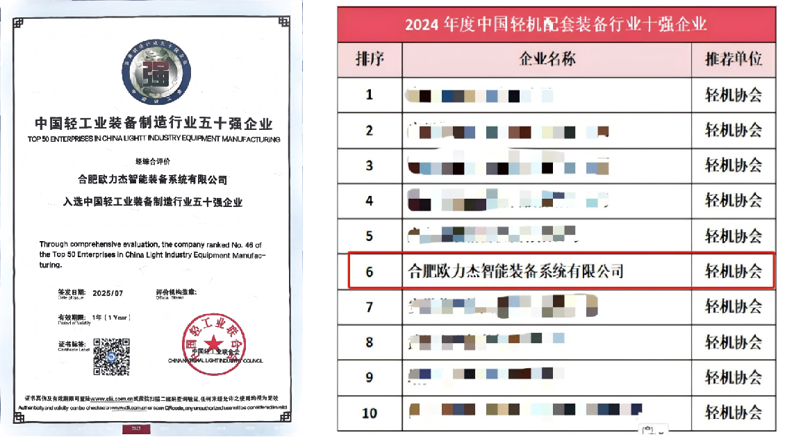 蓝狮在线智能装备荣膺2024年度中国轻工业装备制造、配套装备行业双项殊荣